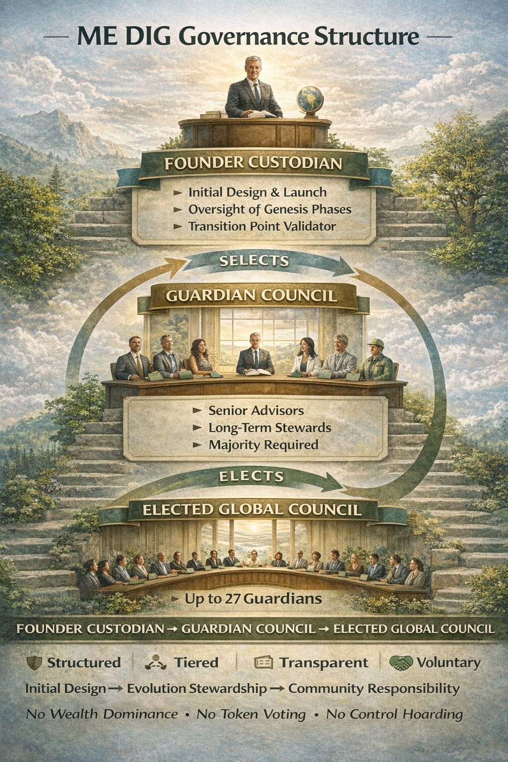 ME DIG is designed to distribute authority gradually and responsibly.